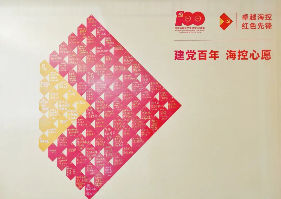 活動期間,在印有中國共產(chǎn)黨成立100周年慶?;顒訕?biāo)識和“卓越海控,紅色先鋒”黨建品牌的許愿墻前面,黨員干部職工紛紛領(lǐng)取特制的海控許愿卡,認(rèn)真寫下自己的祝福語,并鄭重地張貼在許愿墻上,“感謝黨,是您讓我們挺起脊梁,昂首向前”、“祝祖國國泰民安,繁榮昌盛”......所有的心愿卡共同匯聚成巨大的紅色海控集團(tuán)標(biāo)識,表達(dá)了??丶瘓F(tuán)及全體黨員干部職工對黨和祖國的美好祝愿。