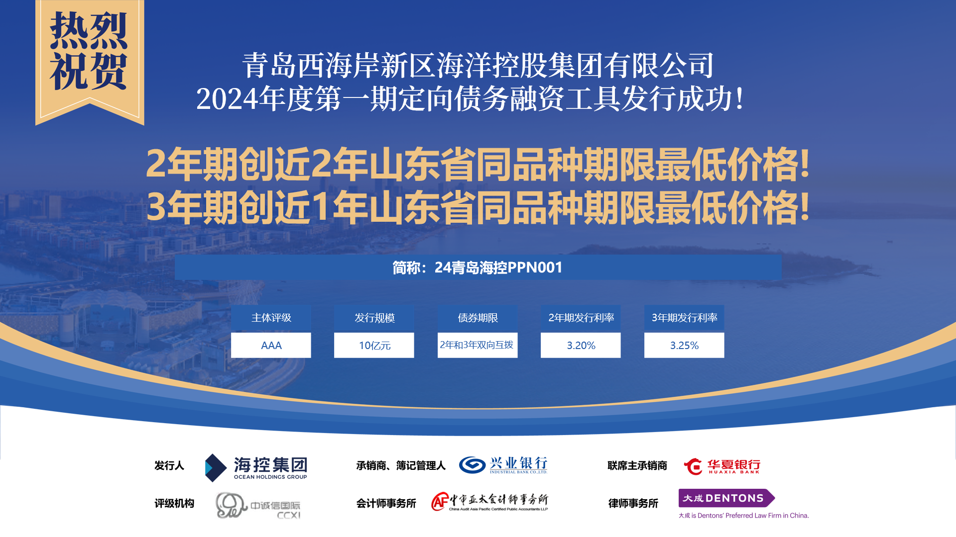 三只債券密集發(fā)行,認(rèn)購(gòu)倍數(shù)高,屢創(chuàng)成本新低。其中,2024年度第一期定向債務(wù)融資工具2年期,創(chuàng)近兩年山東省同品種期限最低價(jià)格;2024年度第一期超短期融資券,創(chuàng)近半年以來(lái)全省區(qū)屬國(guó)企債券發(fā)行最低利率。